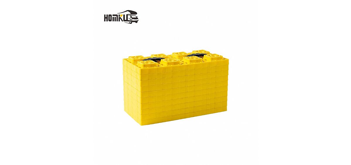 Die Blöcke bestehen aus robustem HDPE-Material, haben einen langlebigen Kunststoffkörper und eine hohe Tragfähigkeit. Die Positionierung ist bereits deutlich sichtbar. Die Nivellierblöcke lassen sich nach Bedarf stapeln, ordentlich anordnen und platzsparend verstauen.