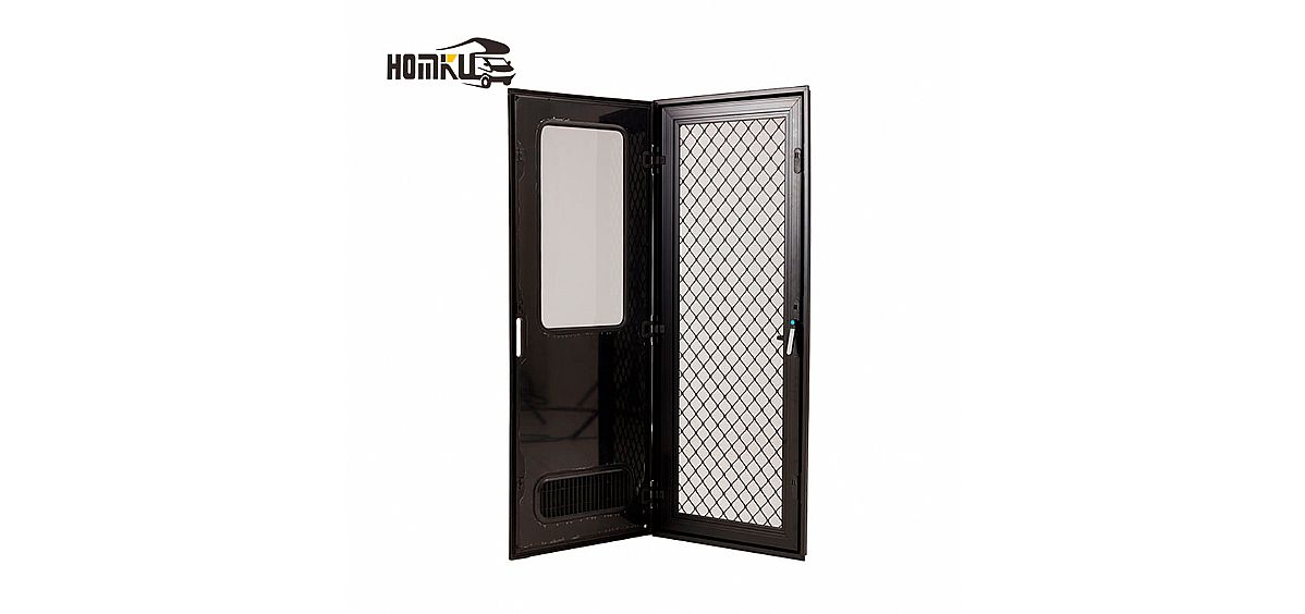 Dank des Rahmens aus Aluminiumlegierung und der Pulverbeschichtung ist die Tür für den regelmäßigen Außeneinsatz konzipiert und behält dabei stets ein sauberes, modernes Erscheinungsbild. Die integrierte Gitterstruktur unterstützt die Belüftung, was besonders für Wohnwagen in warmen Klimazonen oder auf Campingplätzen von Vorteil ist, wo frische Luft gewünscht wird, ohne auf Funktionalität zu verzichten.